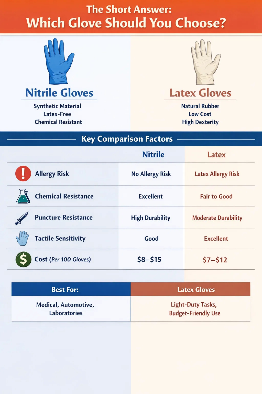 Näiden kahden käsinetyypin välisten erityisten erojen ymmärtäminen auttaa sinua tekemään älykkäämmän ostopäätöksen, olitpa sitten varastossa lääkäriasemassa, tatuointistudiossa, mekaanikkoliikkeessä tai kodin ensiapulaukku.